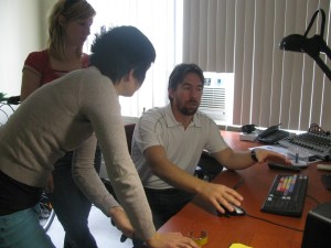 In our filming, we had four different camera people on two continents shooting with six different cameras. Then there was Vivian and Hubert’s own video camera. Some of these cameras were tapeless, some not and they each record and store media in slightly different ways, meaning 7 cameras = 7 x the headaches. So Assistant Editor Stephanie Weimar and post production supervisor David Oxilia discuss the options. He helps Steph deal with all the formatting issues now so we won’t run into major problems in the final (and very expensive) On-Line Edit Process because of improperly coded footage. Picture Editor Catherine Legault, who just edited our documentary “A Modern Castle” for the Canadian Museum of Nature, also joins in to contribute her technical preferences.
